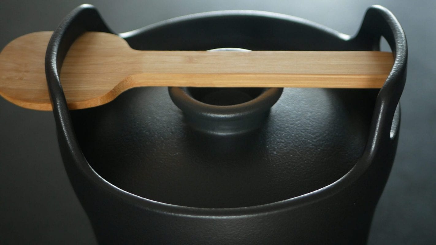 Rijstpannen zijn er in vele soorten en maten, de meeste met een stekker. Zo niet de Azume, een elegant Nederlands ontwerp van een keramisch pannetje met een bijpassende bamboe lepel die in de pan een eigen parkeerplaats heeft. Het keramische materiaal geeft geen enkele smaak af aan de rijst, bovendien is het de ideale plek om de rijst warm in te houden. Voor en tegen: de Azume is licht van gewicht en een lust voor het oog, maar niet spotgoedkoop (€ 89) en zonder tussenkomst van een converter ongeschikt voor inductie.