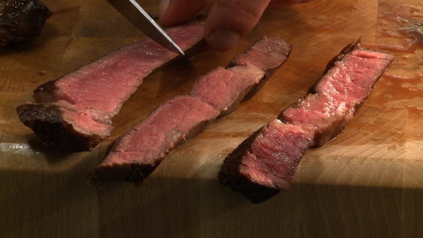 Wie van vlees houdt heeft doorgaans een voorkeur voor vlees dat niet bevroren geweest is. Toch zijn er situaties waarin je met bevroren vlees te maken krijgt. De gangbare methode is dan: langzaam laten ontdooien in de koelkast. In een vorige video nam Gertjan Kiers de proef op de som: hij bakte een bevroren entrecote naast een verse exemplaar en het resultaat van bevroren vlees in een hete pan was zeer goed te noemen. Deze keer gaat hij dieper in op de ontdooiïngskwestie, nu met ribeye in de hoofdrol. Wat is het verschil in bakresultaat tussen een langzaam ontdooide, een snel ontdooide en een bevoren gebakken ribeye?