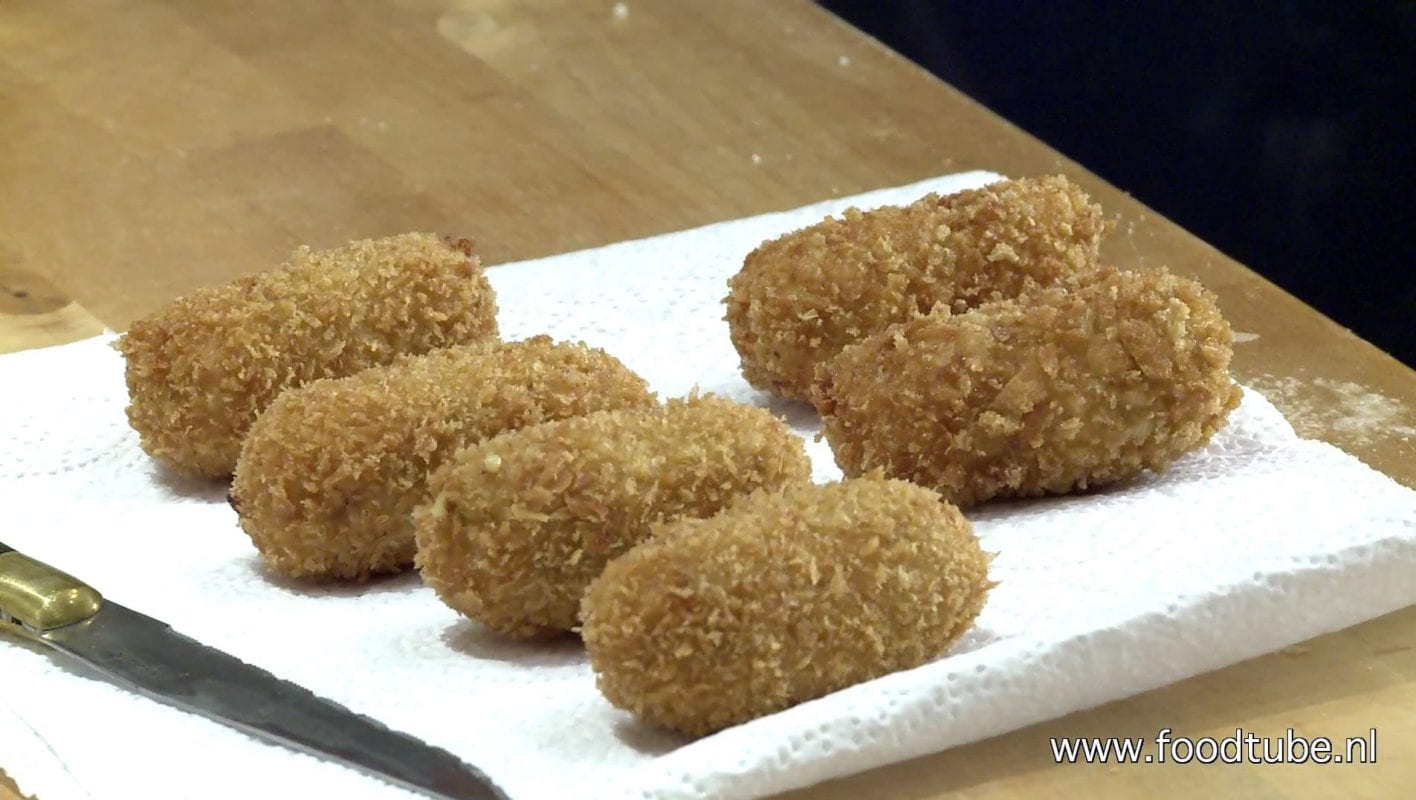 - Frituur de croquetten 3 minuten in zonnebloemolie van 180 graden