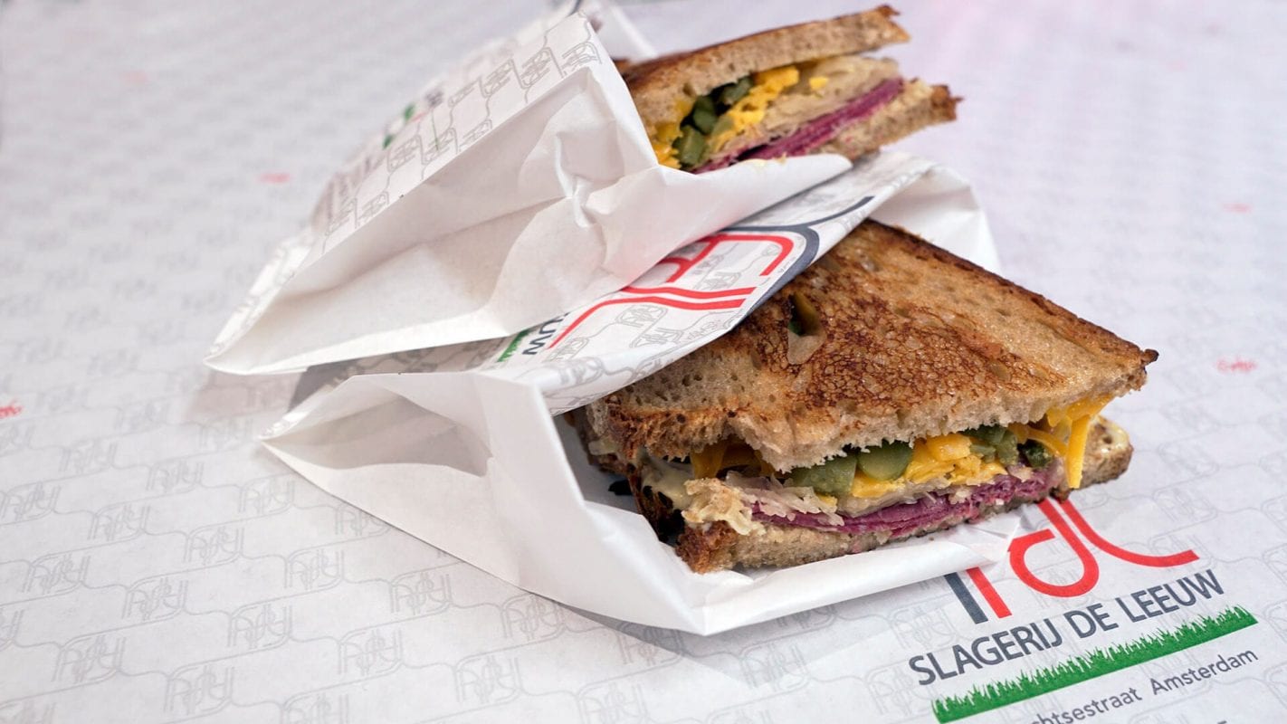 Over de exacte herkomst van de Reuben sandwich doen nogal wat legenden de ronde, maar het zou best eens kunnen dat de lekkerste geserveerd wordt bij Slagerij De Leeuw in Amsterdam. Ga maar na: Gerookte puntborst van Wagyu, Poilâne brood, mosterdmayonaise en Elzasser zuurkool…