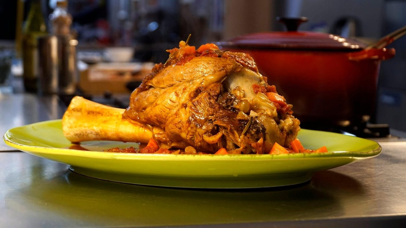 Edgar Buhrs, een van de chefkoks van VanDrie Group, maakt jarret de veau, een hele kalfsschenkel met bot. Een klassiek, feestelijk familiegerecht. De kalfsschenkel wordt ook gebruikt voor ossobuco, dan worden er plakken van gezaagd die een mooi stuk merg in het midden hebben. Die schenkelplakken zijn ook zeer geschikt om een kalfsbouillon van te trekken. In een andere video op Foodtube maakt Edgar ossobuco.
