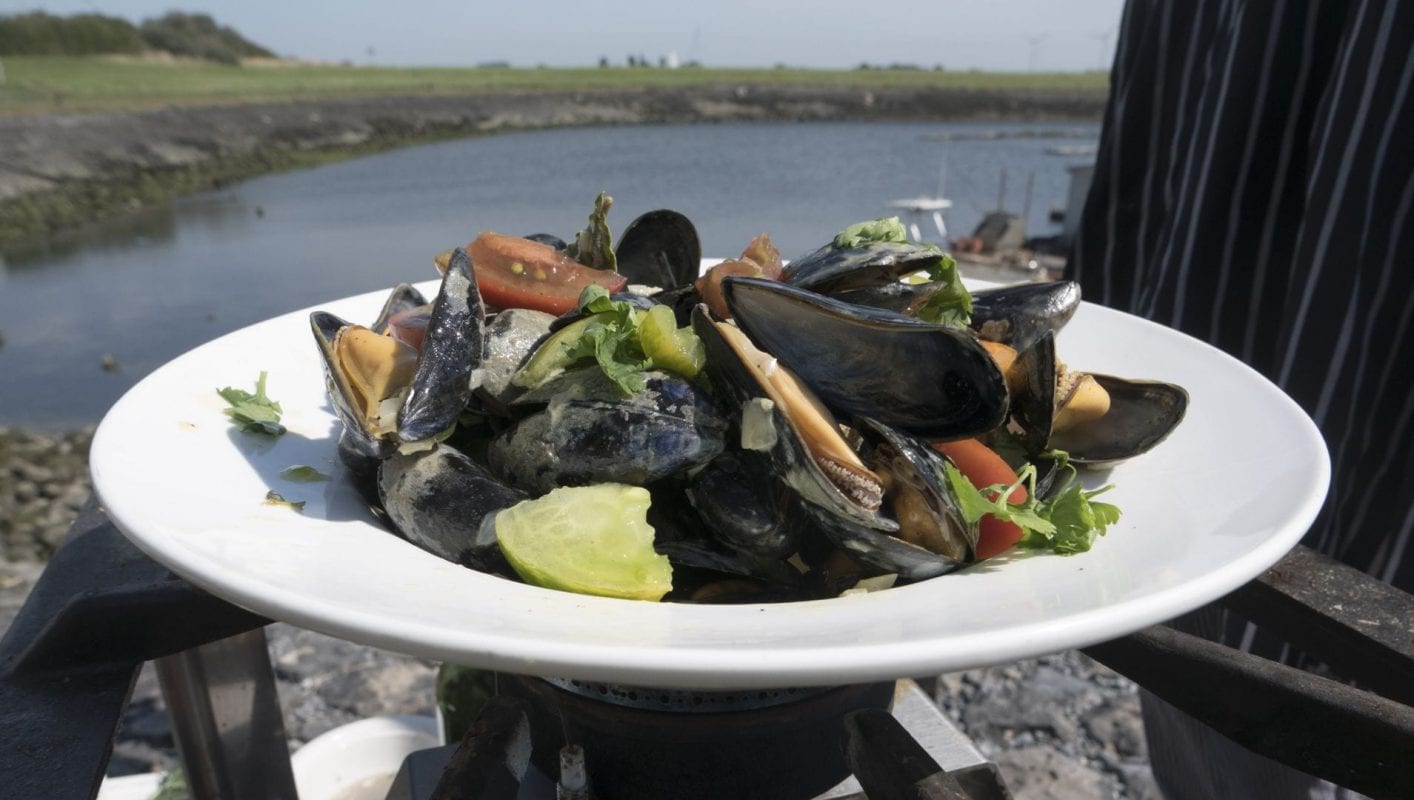 Mouclade is een mosselgerecht uit de Franse havenplaats l’Orient. Vooral gekenmerkt door de toevoeging van een bescheiden hoeveelheid kerrie. Een heerlijk gerecht waarbij de romige saus niet te versmaden is. D. P. Arkenbout, patron cuisinier van Brasserie De Vluchthaven in Bruinisse maakt de mouclade op de enig mogelijke manier: à la minute.
