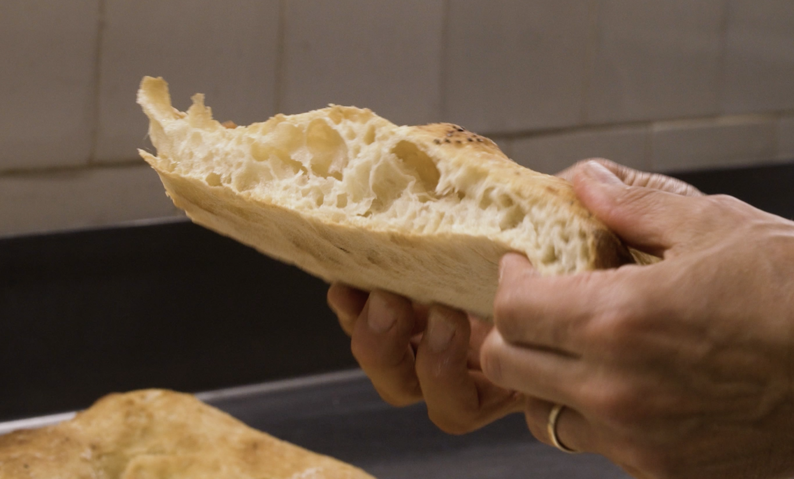 Bakker Issa Niemeijer-Brown van bakkerij Gebr. Niemeijer in Amsterdam, maakt een pizza bianca. Een witte pizza dus, want er komt geen tomatensaus aan te pas. Van een witte kun je sandwiches snijden of je kunt er repen van serveren bij de maaltijd. Het onderstaande recept komt uit Een boek over brood, het boek waarin Issa zijn broodrecepten heeft opgetekend. Je kunt het boek bestellen met deze link en als je dat doet help je niet alleen Issa en Foodtube, maar ook een zelfstandige fysieke (kook)boekwinkel zonder dat het jou iets extra kost.