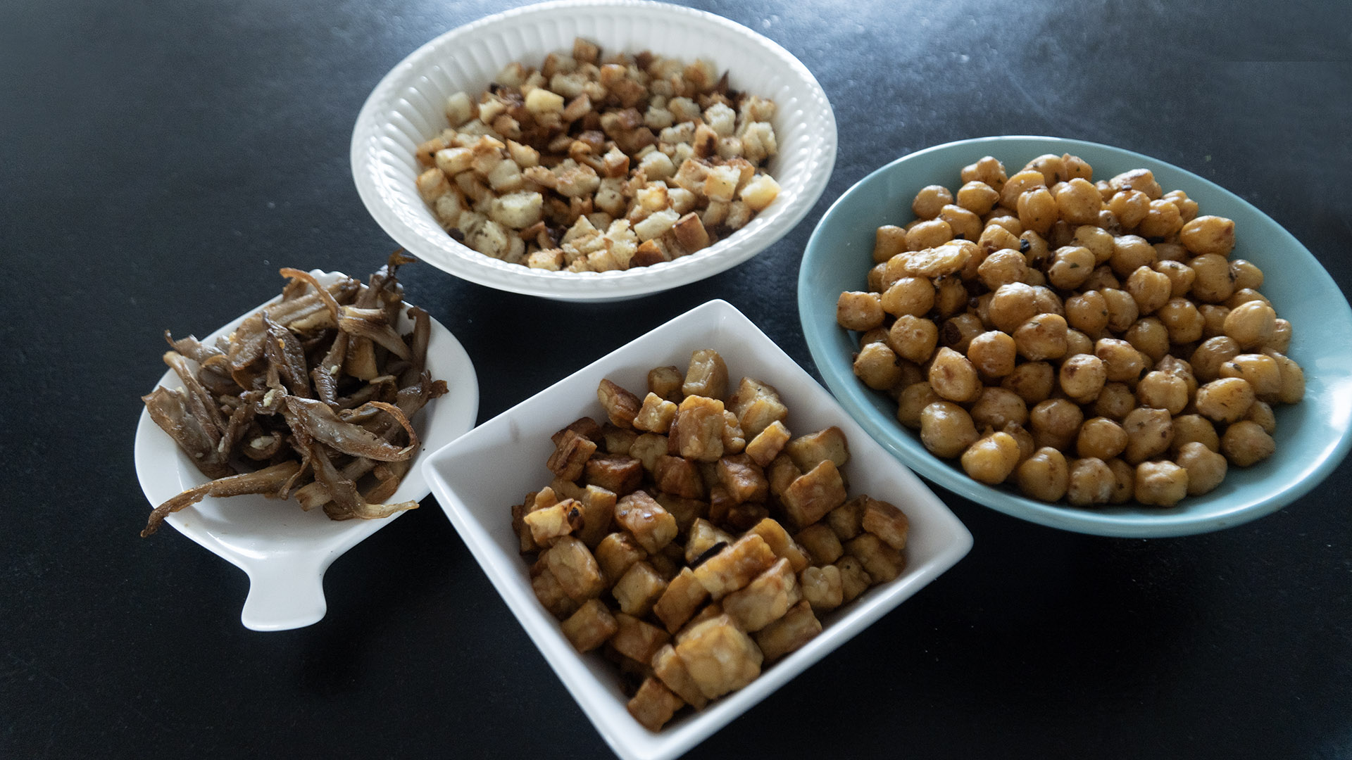 Mari Maris, auteur van o.v.a. het boek met de zelfverklarende titel Groenten zocht en vond vegetarische alternatieven voor de aloude gebakken spekjes die zo’n verleidelijke rol spelen in de sla of de stamppot. In de video geeft ze een handjevol suggesties die min of meer tot hetzelfde resultaat leiden.